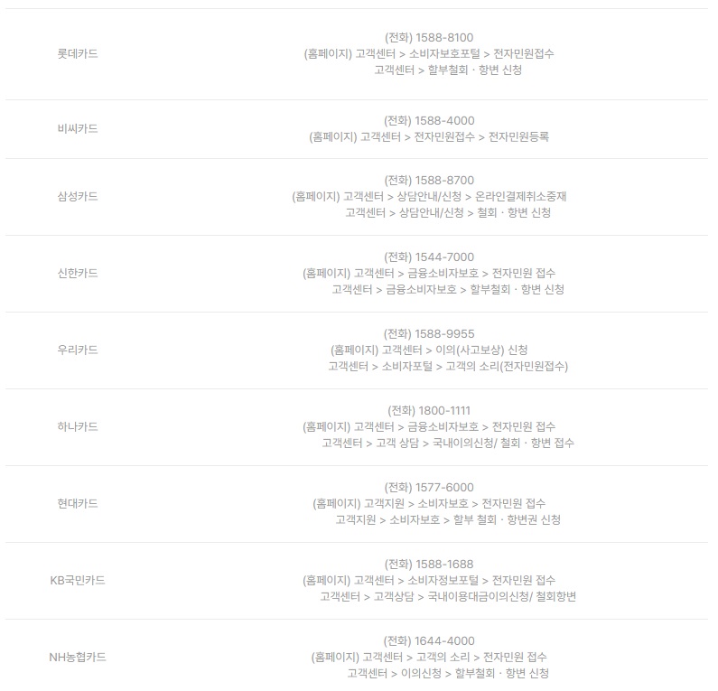 카드 일시불로 결제한 분들은 각 카드사별로 이의제기 신청 접수를 하시면 됩니다.